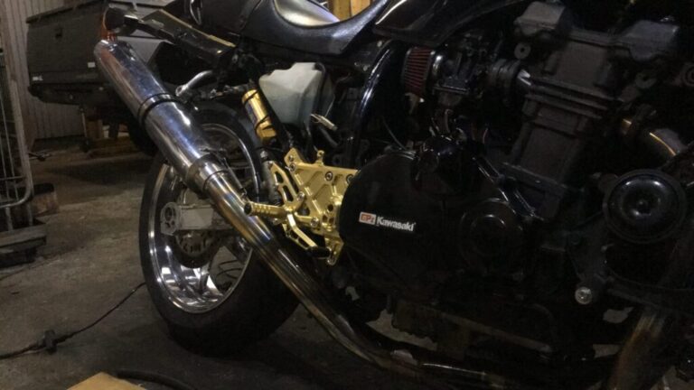 GPZ900R NINJA用のK-FACTORYさんのバックステップです! カラーはステイゴールド。 A6仏壇カラーのNINJAに装着します! K-FACTORYさんのステップ装着で一気にゴージャスに。 オーリンズのタン … 続きを読む GPZ900R K-FACTORY ライディングステップ!